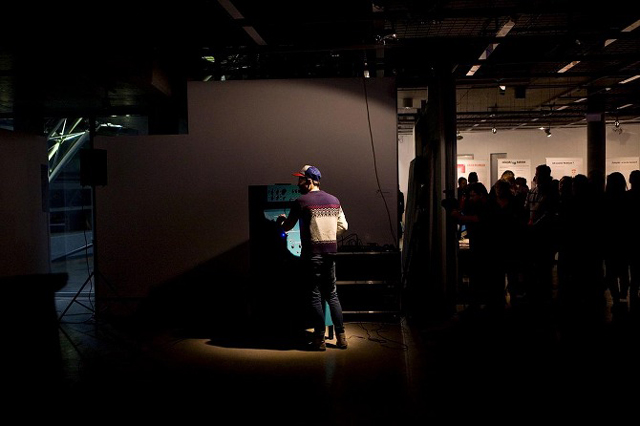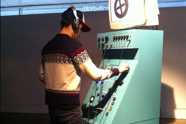 For the 2012 museum night in the wonderful town Chelmek I was invited to prepare a performance. The event was taking place at the former "Bata" shoe factory, which cover a huge terrain and had it's own Heat&Power station running on coal. The station is still running, but now it's heating the houses of Chelmek. A special trip was organised for me to have a look at the inside of the factory. A beautiful world of old machines, pipelines, transport belts and other inhuman things. This things found inside this factory inspired me to make a machine that has the design on the old machines found in the factory. Only one difference, mine generates sound.